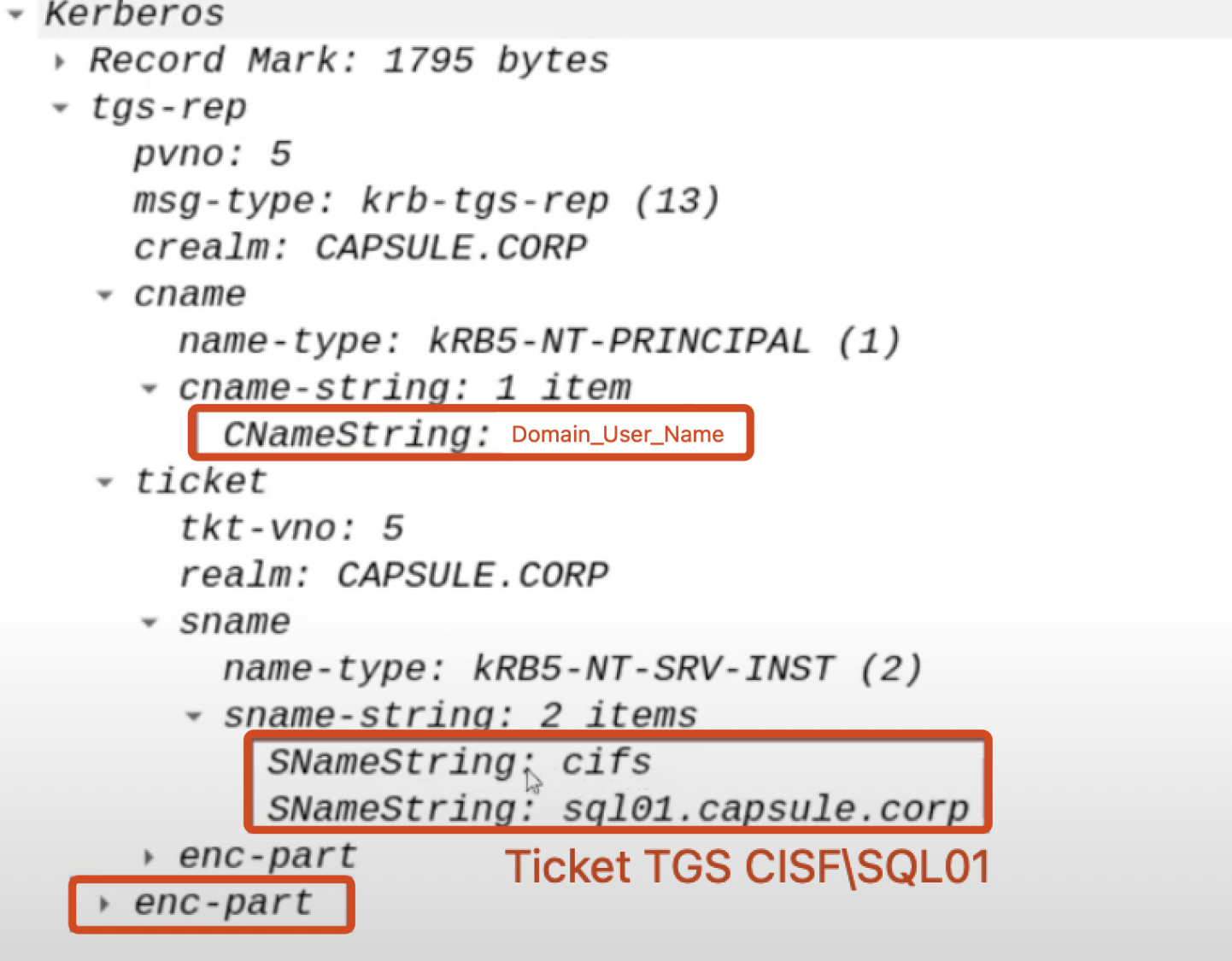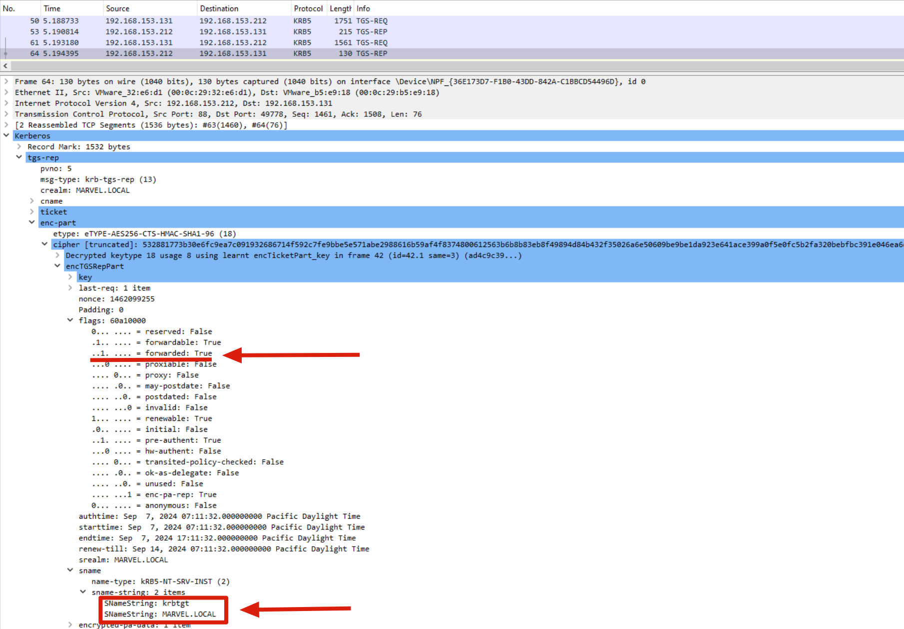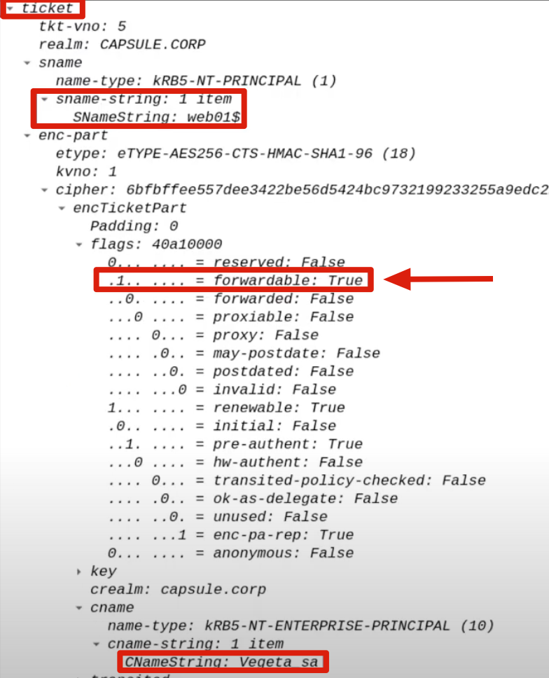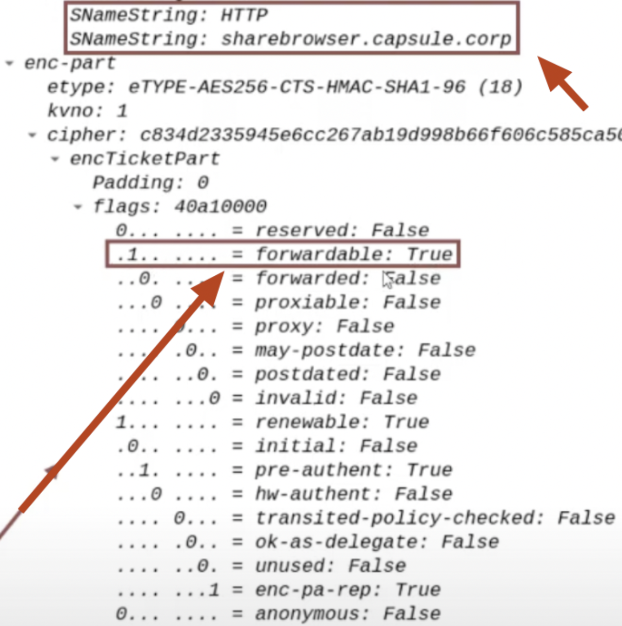 I want to highlight that the KDC sent a “Forwarded TGT Ticket” within the encrypted part of a KRB_TGS_REP, in a traditional Kerberos authentication the KDC would issue a TGT Ticket exclusively in a KRB_AS_REP.