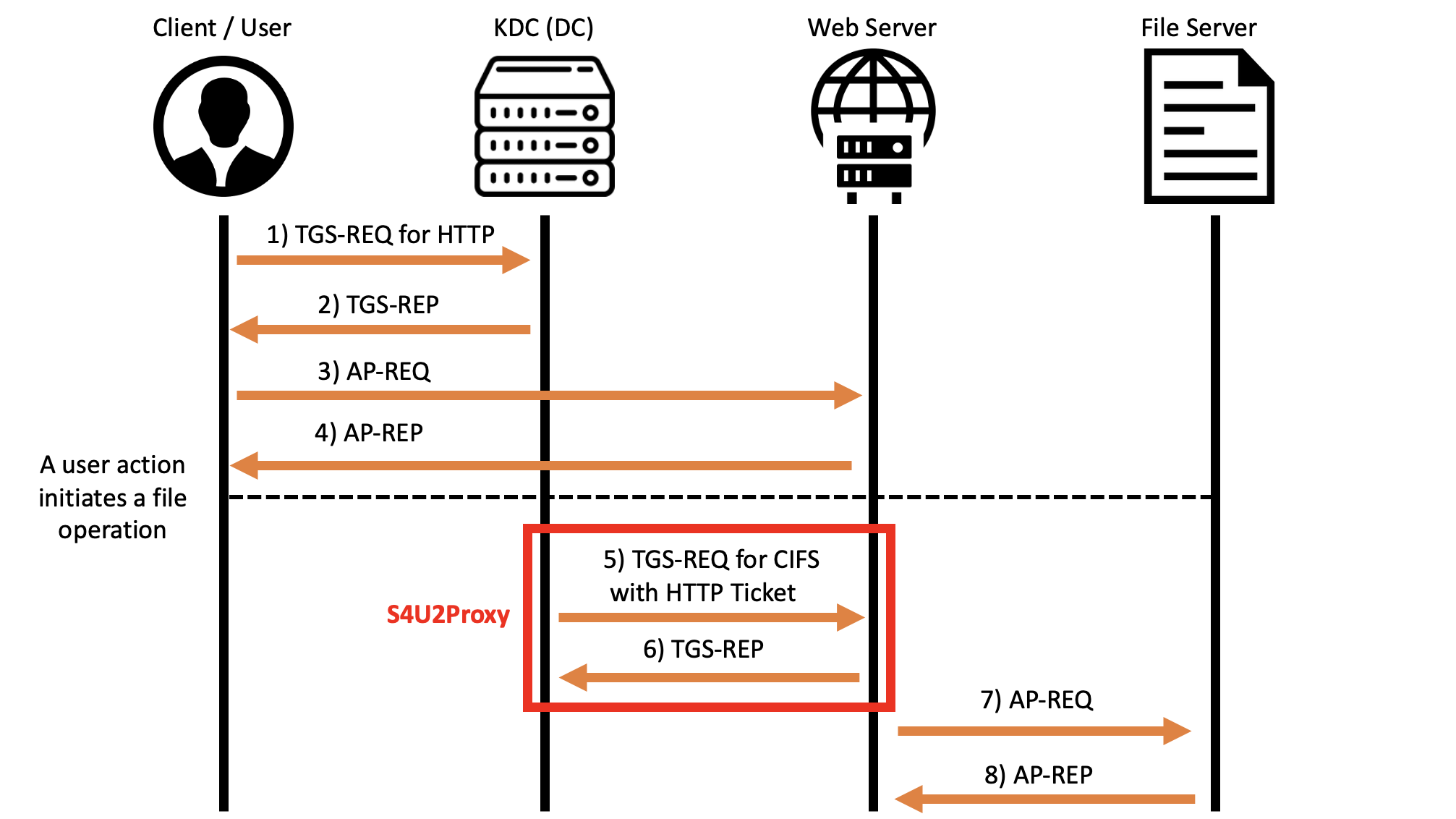 This TGS Ticket belonging to the Client (e.g., CAPSULE.corp\vegeta) valid for the AP Front End (e.g., HTTP) will be used exclusively by the AP Front End as “evidence” to subsequently invoke the S4U2Proxy extension.