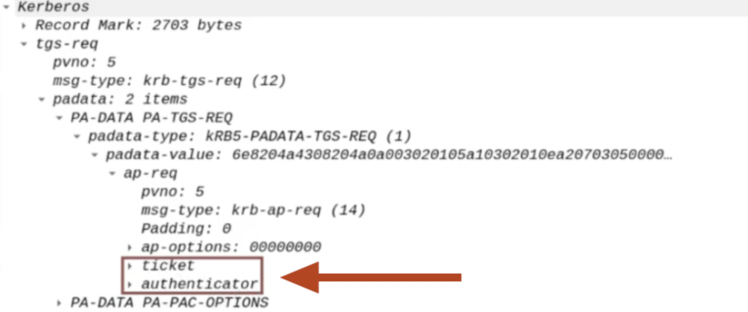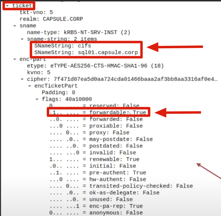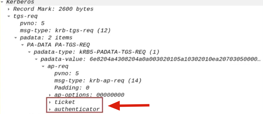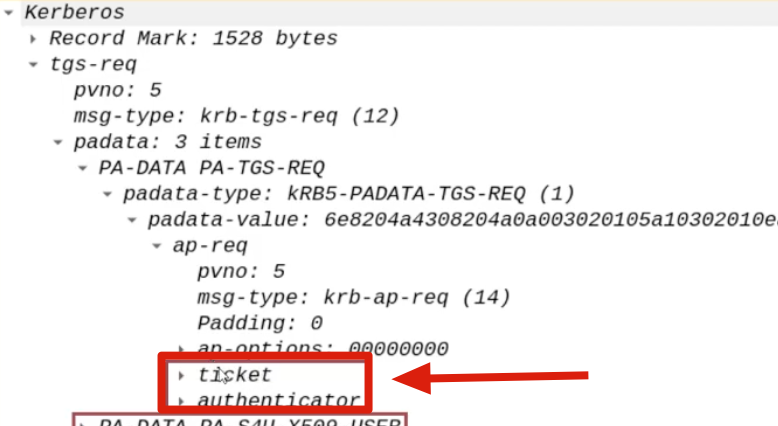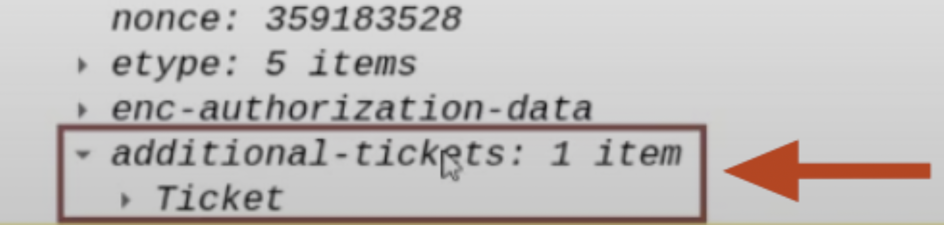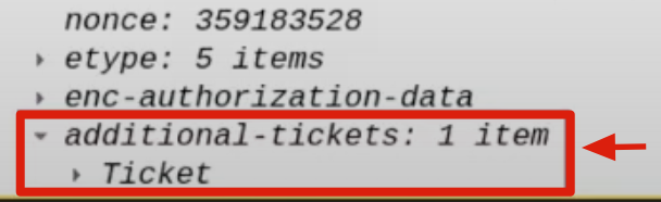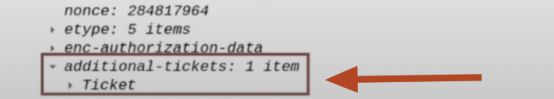 I want to highlight that the “Forwarded TGT Ticket” sent is contained within the “authenticator” field of the “TGS Ticket”.