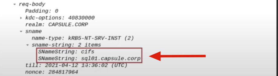 The AP Front End needs to have a TGS Ticket valid for itself that belongs to the Client (ex CAPSULE.corp\vegeta), consequently the AP Front End will specify the name of the domain account it wants to impersonate, that is, the account that connected to the AP Front End (ex CAPSULE.corp\vegeta):
