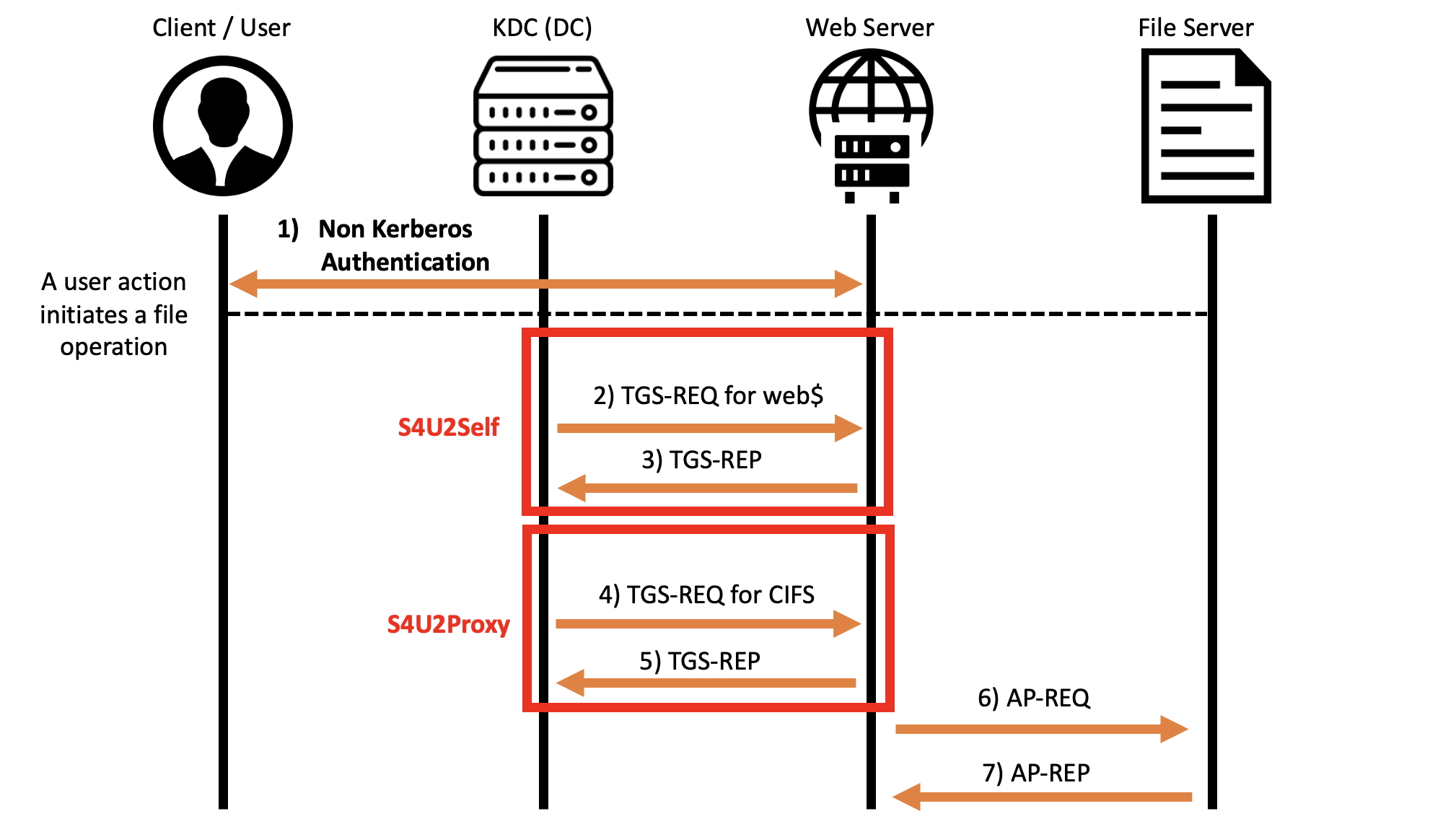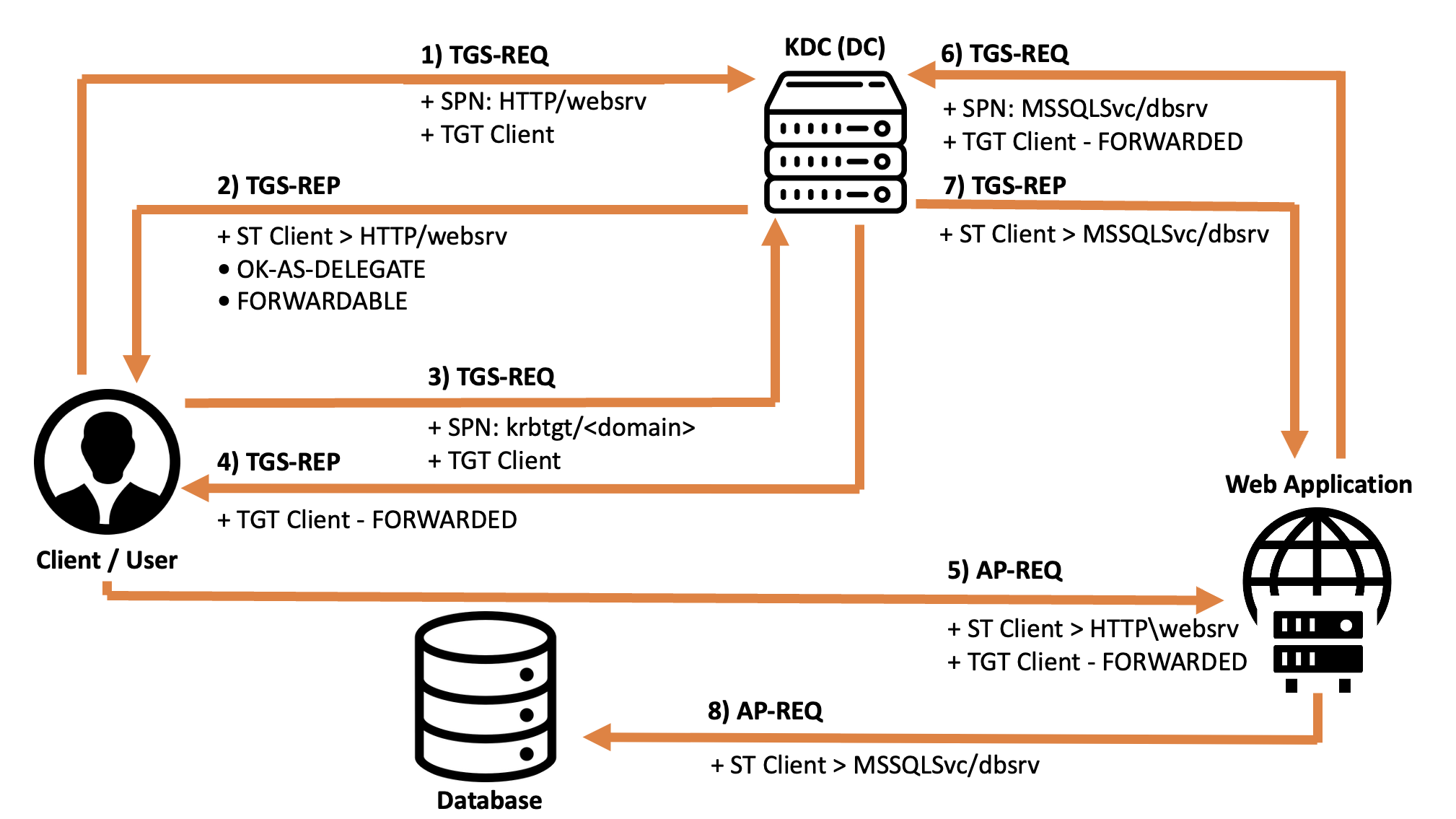 Let’s assume a scenario where a domain user authenticates via Kerberos to a “Front-End” AP (service) such as a Web Application, which, to operate correctly, must interact with a “Back-End” AP (service) such as a Database or a File Server.