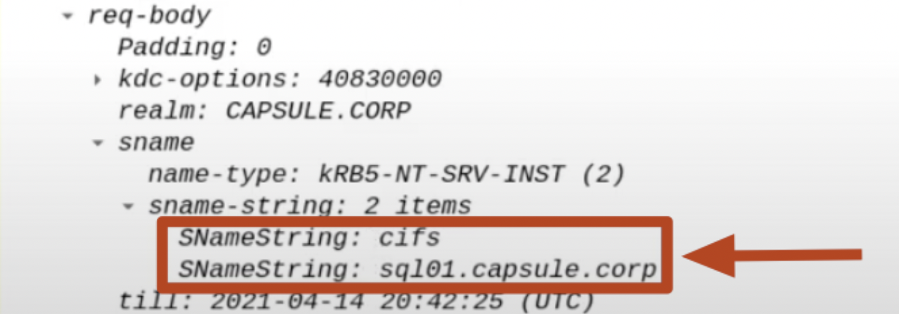 Now that the AP Front End has a TGS Ticket to use as “evidence” to prove that the Client (ex CAPSULE.corp\vegeta) has authenticated to it (HTTP) (even though in reality it authenticated NOT using Kerberos) it can invoke a traditional “S4UProxy”, so, as previously seen, the AP Front End will send to the KDC a “KRB_TGS_REQ (S4U2Proxy)” packet containing, in summary: