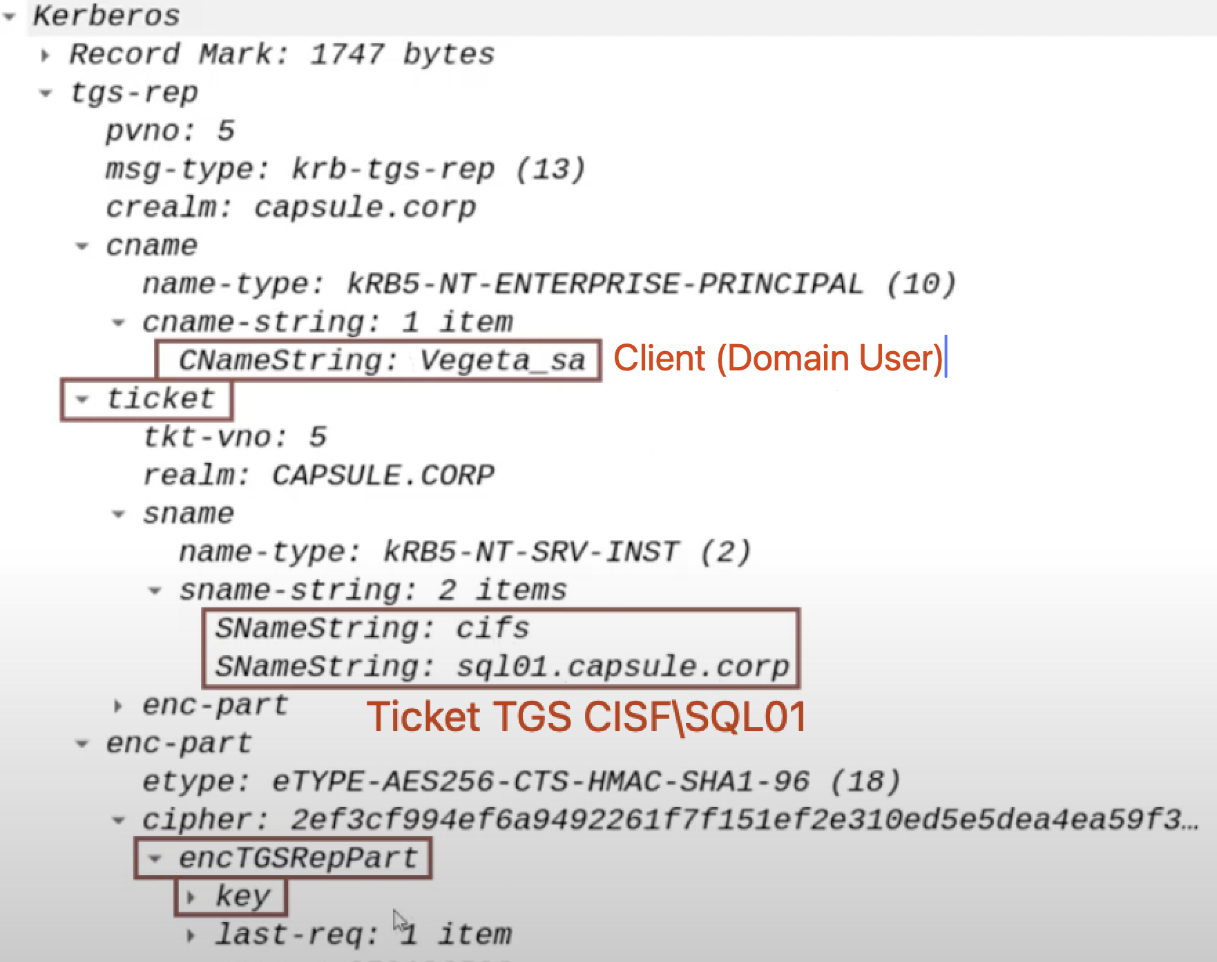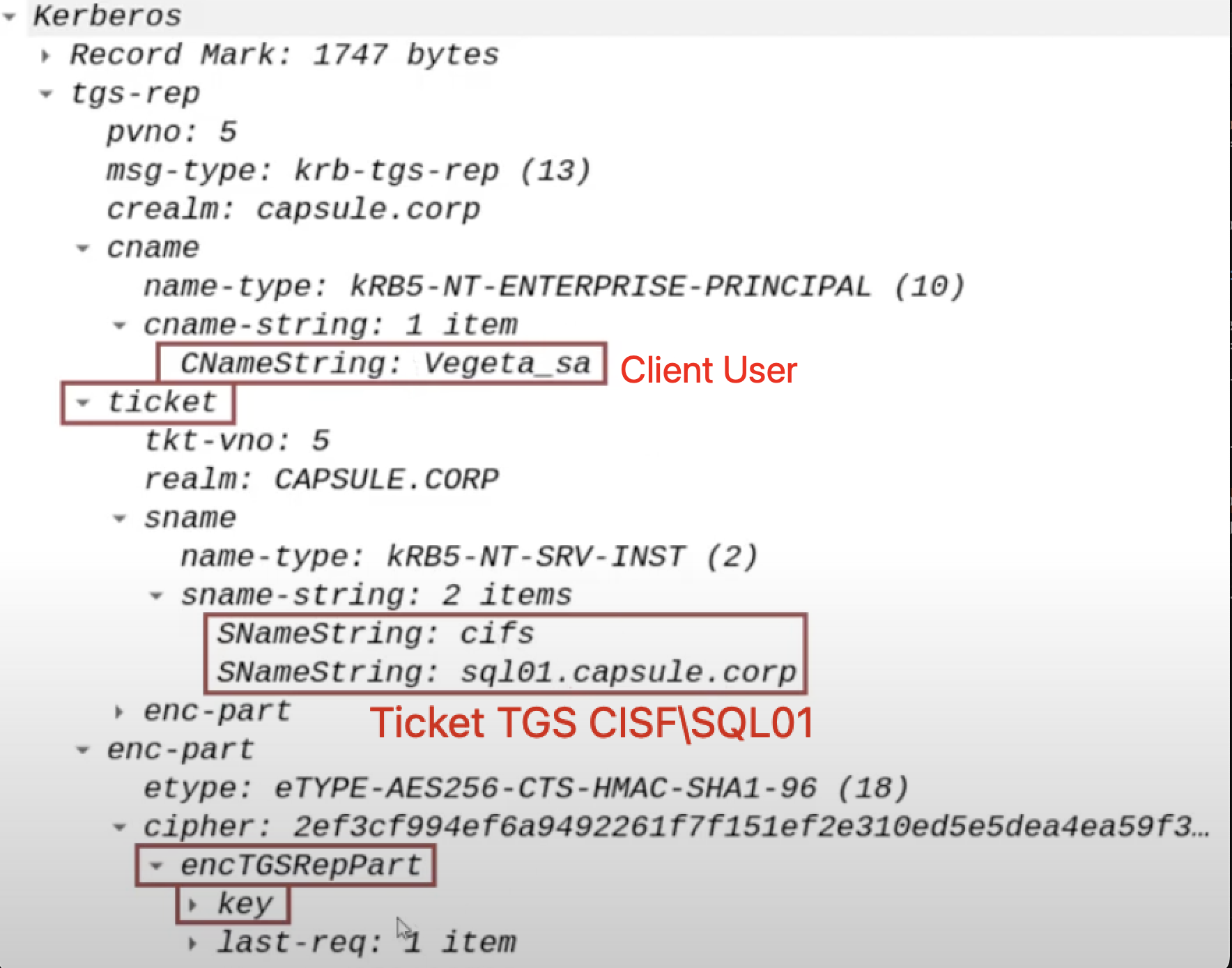 This TGS Ticket belonging to the Client (ex CAPSULE.corp\vegeta) valid for the AP Front End (ex HTTP) will be used exclusively by the AP Front End as “evidence” to subsequently invoke the S4U2Proxy extension.