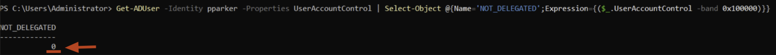 It is necessary that the domain user that performs Kerberos authentication to the “Front-End” AP does NOT have the “NOT_DELEGATED” flag set to “TRUE” / “1” in the “UserAccountControl” property; if it is, then that user is NOT delegable, by default ALL domain users do NOT have this flag enabled and are therefore relayable.