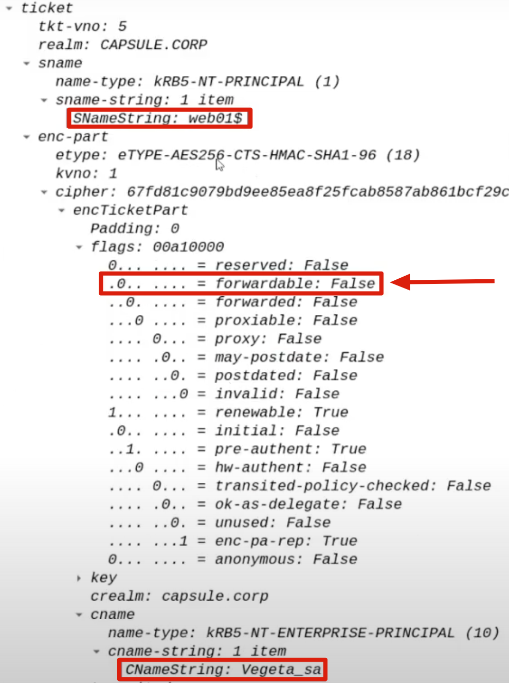 I want to highlight that this TGS Ticket does NOT have the “FORWARDABLE” flag set.