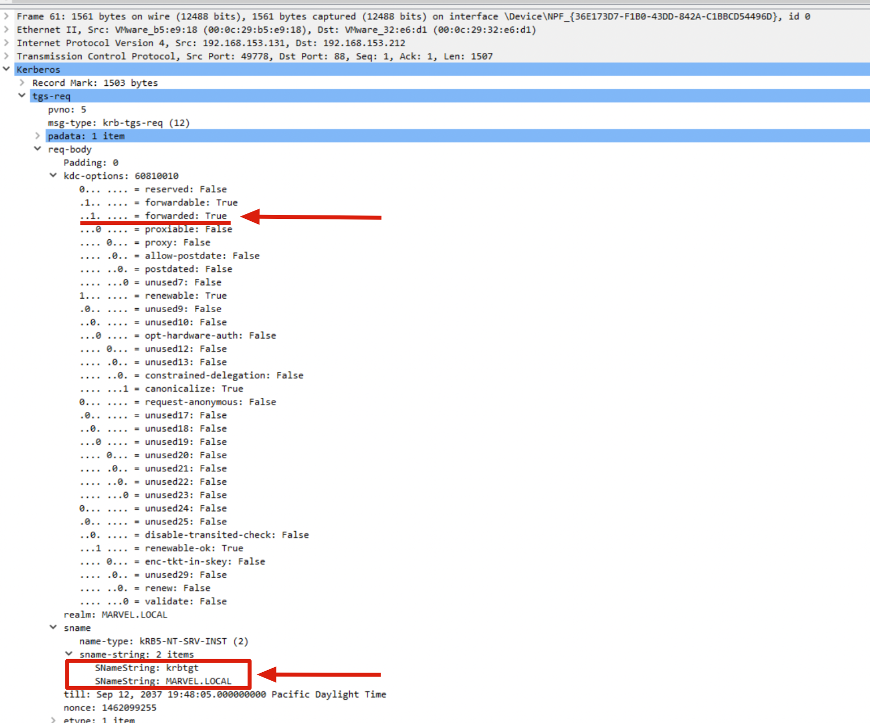 Furthermore, i want to highlight that the TGS Ticket sent will have the “Forwardable” flag set to “1”; by default, this feature is present in ALL TGS Tickets, that said in this scenario this flag will be interpreted and therefore it is important to specify it.
