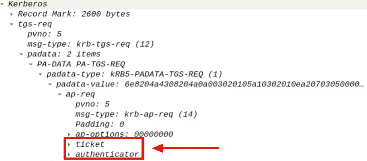 I want to highlight that the “Forwarded TGT Ticket” sent is contained within the “authenticator” field of the “TGS Ticket”.