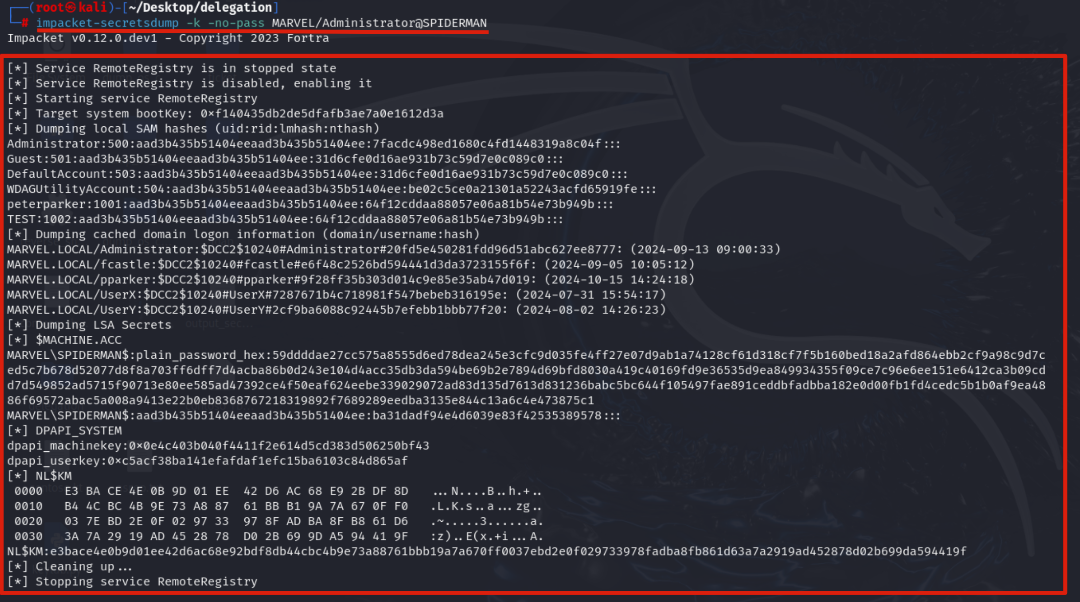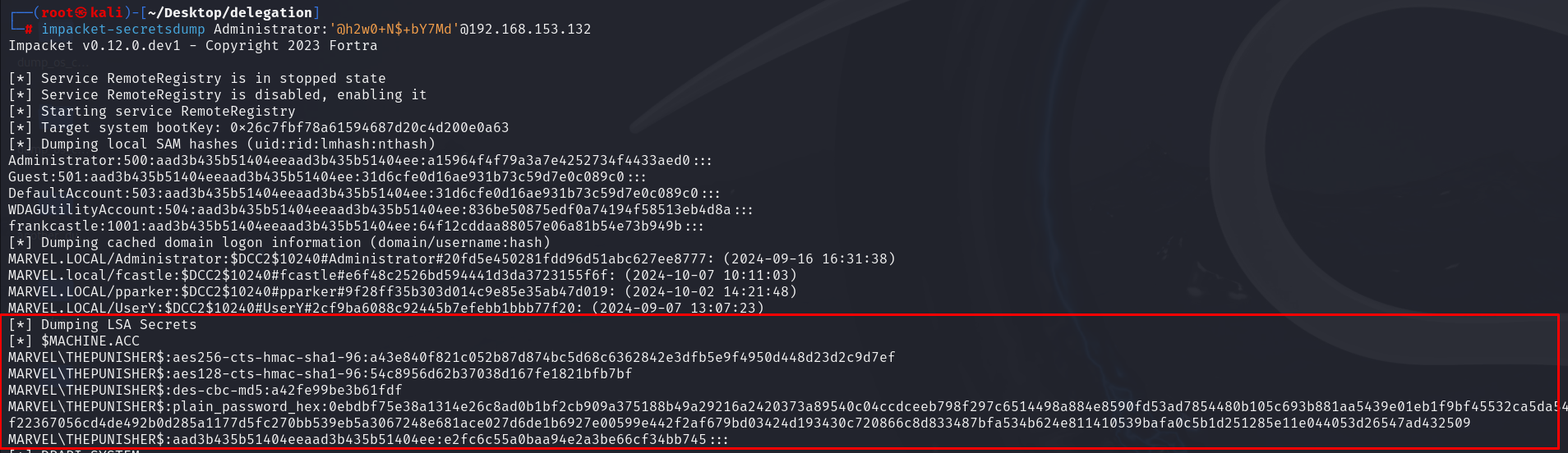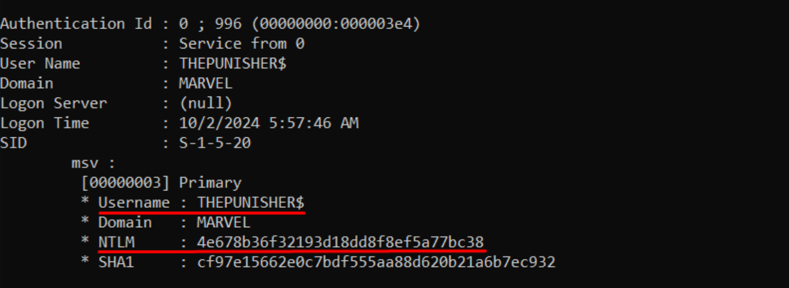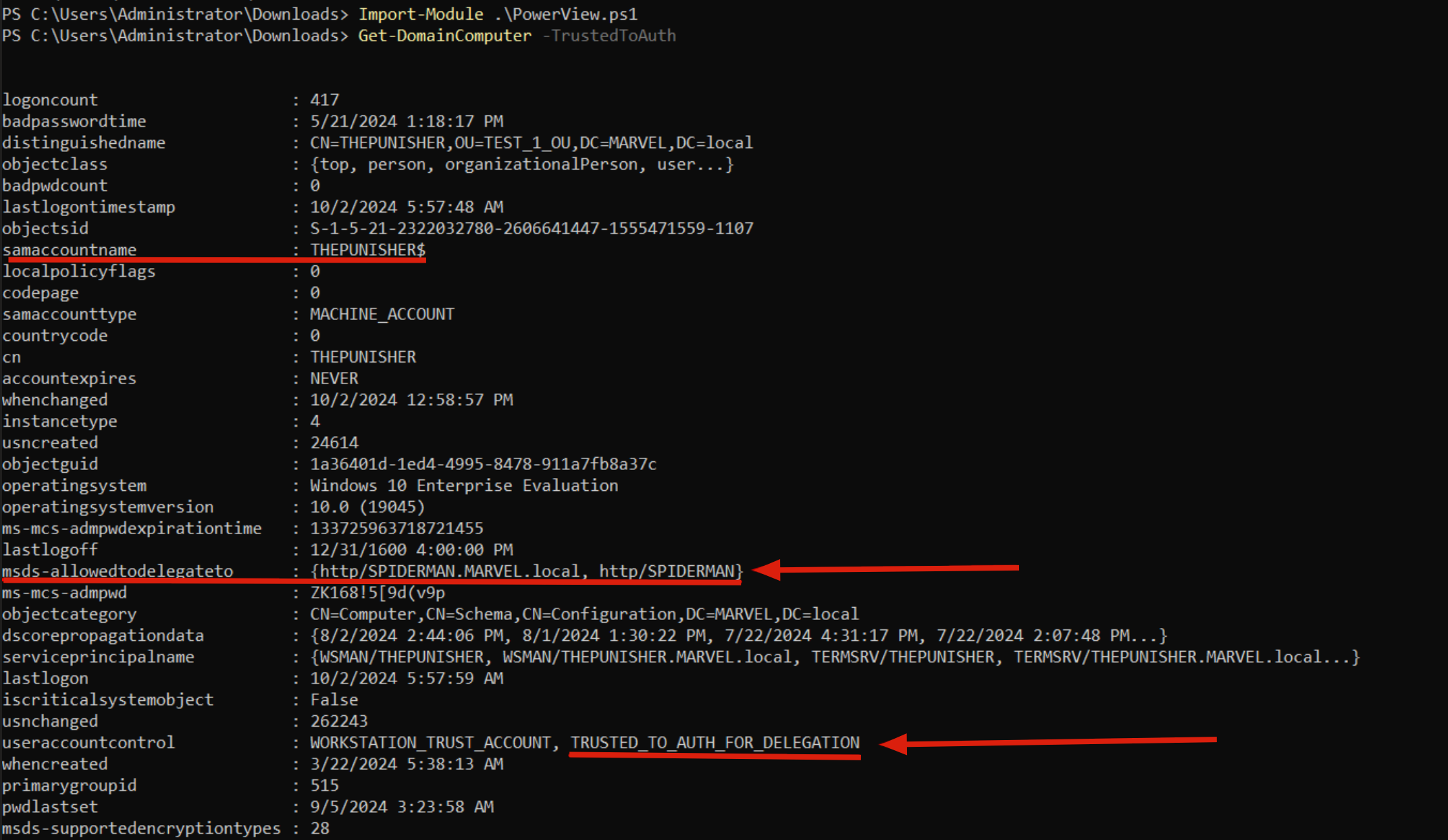 In this scenario, the attacker managed to authenticate with administrative permissions on the THEPUNISHER machine and, by dumping LSASS, obtained the credentials of the THEPUNISHER$ Computer Account, so, the Service Account with Constrained Delegation (Kerberos Only) enabled.