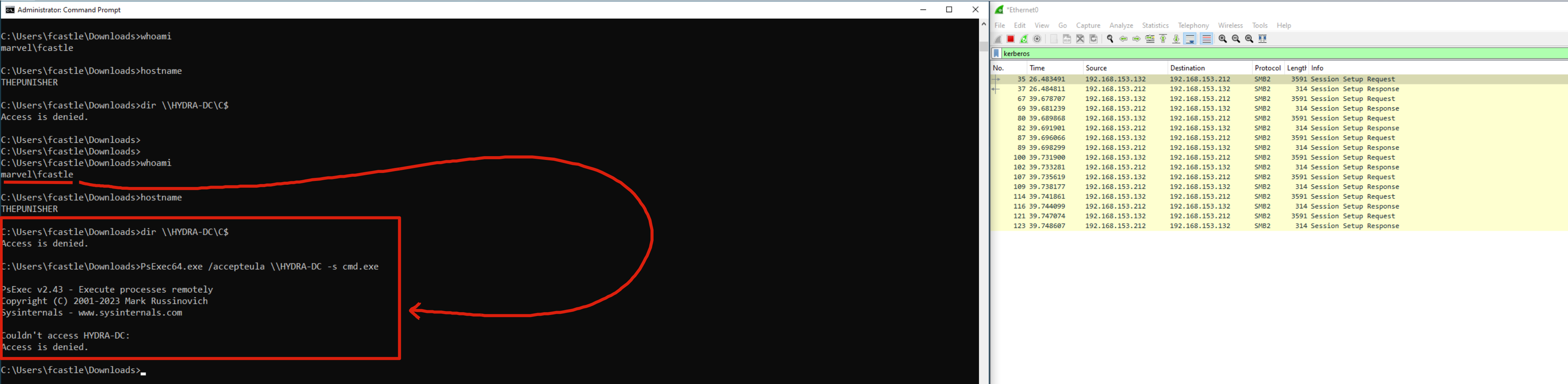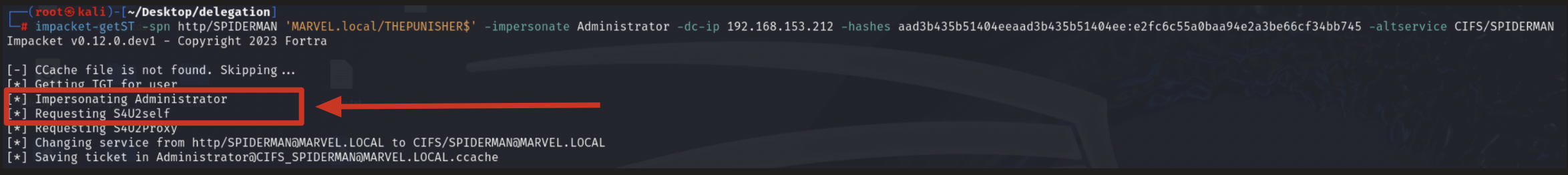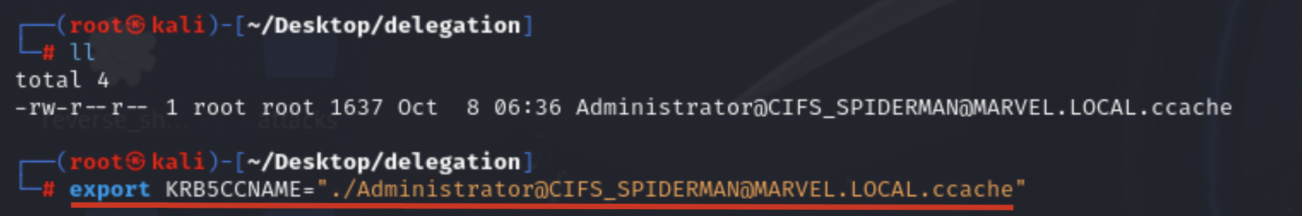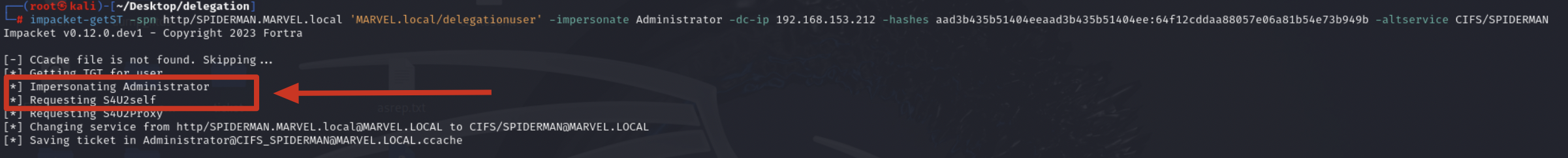 As you can see below, the attacker is now able to correctly impersonate the Domain Admin user “MARVEL\pparker” and thus access the Domain Controller.