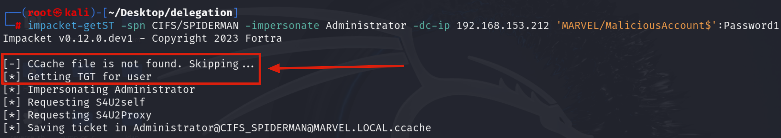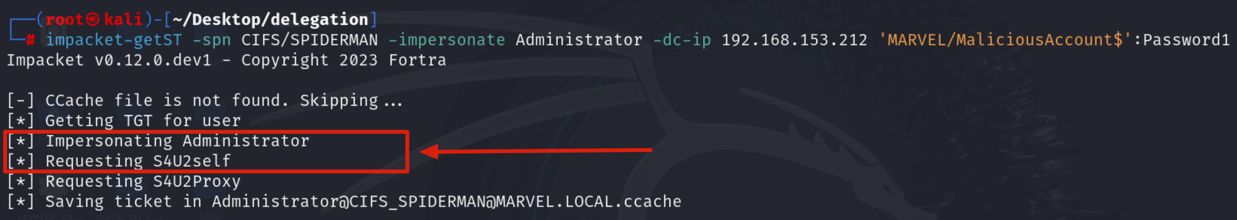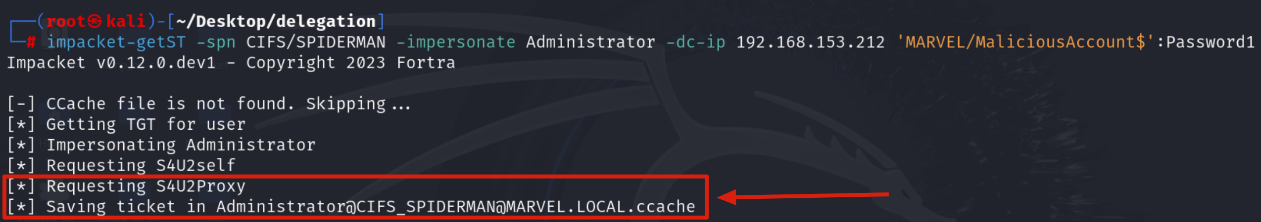 As you can see below, the attacker is now able to correctly impersonate the Domain Admin user “MARVEL\pparker” and thus access the Domain Controller.