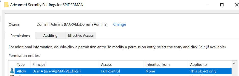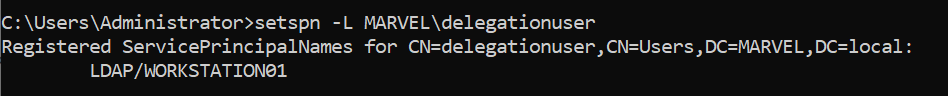 As you can notice, the traditional domain user MARVEL\userz has Constrained Delegation (Kerberos Only) enabled, specifically, this user and therefore ALL services started with it (in this case the Service Account “User” has the SPN LDAP/WORKSTATION02 and therefore will run the LDAP service on that machine; the fact that this machine does NOT exist in my lab is irrelevant for the purpose of the exploitation) will be able to authenticate on behalf of the Client exclusively towards the SPN “HTTP/SPIDERMAN”, so to the HTTP service of the machine SPIDERMAN.
