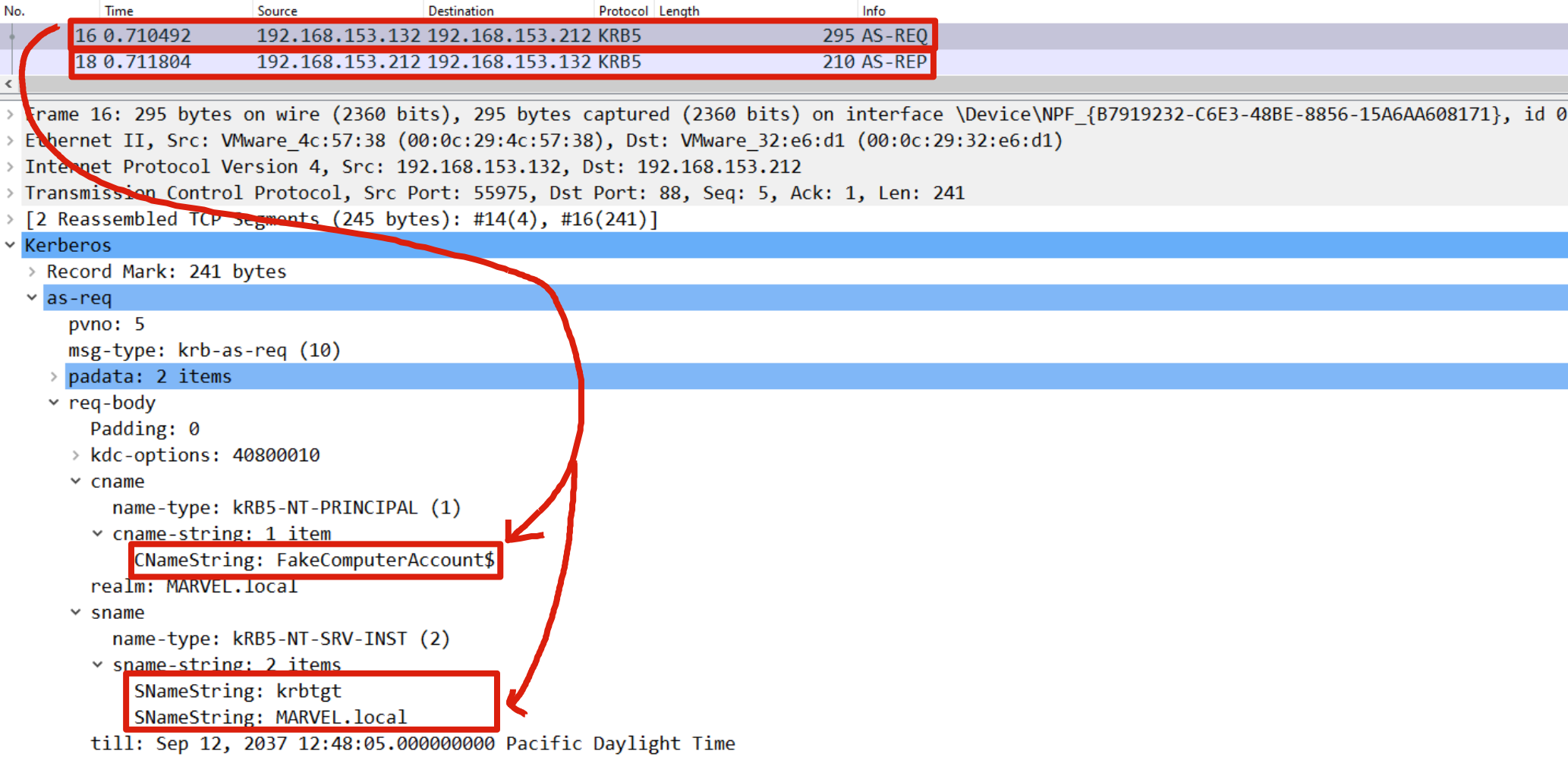 Rubeus sent a “KRB_AS_REQ” to obtain the TGT Ticket of the Computer Account THEPUNISHER$, information necessary to invoke the “KRB_TGS_REQ (S4UProxy)”