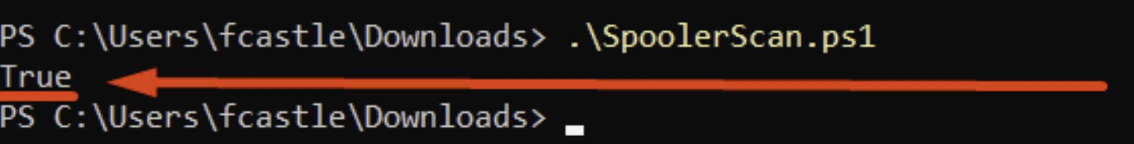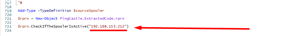 The source must be modified by inserting the IP of the machine you want to check, as you can see in our example the Domain Controller HAS the spooler service enabled.