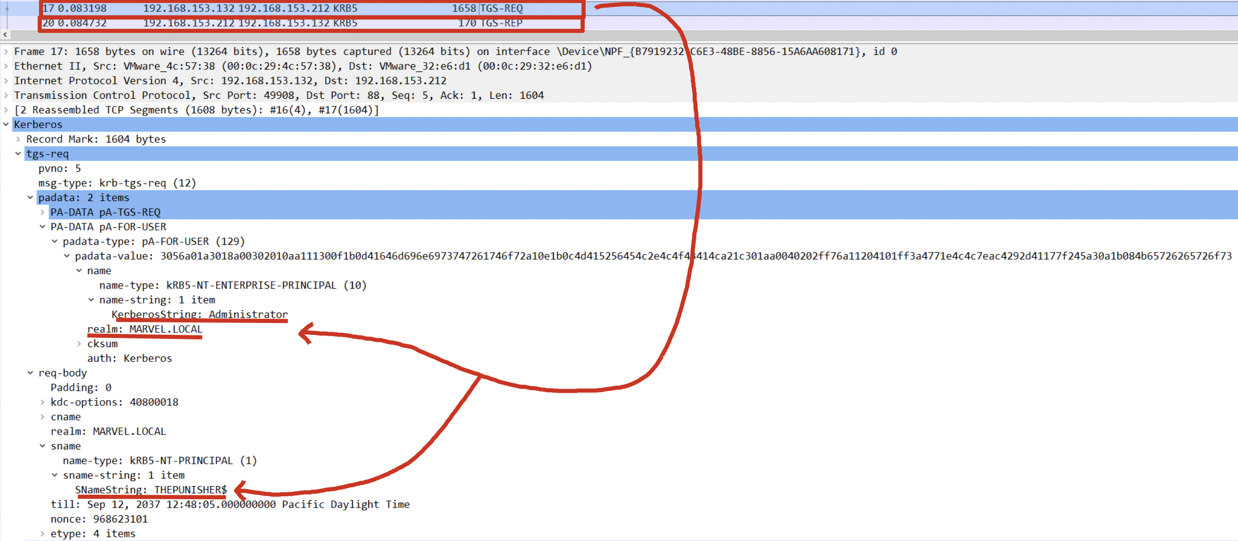 Rubeus sent a “KRB_AS_REQ” to obtain the TGT Ticket of the Computer Account THEPUNISHER$, information necessary to invoke the “KRB_TGS_REQ (S4UProxy)”