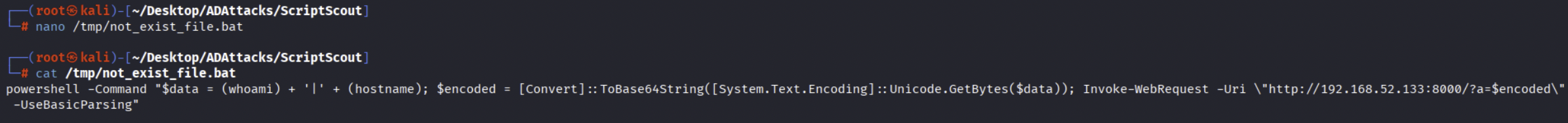 By running ScriptScout, it is possible to observe how an Automation Script attempts to execute the remote file “not_exist_file.bat” located on the SMB share named “business_folder” (specifically at the path \\192.168.52.132\business_folder\magement_file\not_exist_file.bat), since this file does NOT exist and its parent folder or the SMB share itself grants “FullControl” permission to the “Authenticated Users” group, an attacker impersonating any domain user or Computer Account could first create the “not_exist_file.bat” file, insert the malicious payload inside it, and finally upload it to the specific path where the Automation Script will attempt to call it; in this way, the malicious file will later be executed by the victim user (so a domain user for Logon & LogOff Scripts, the local “NT\ Authority System” user for Start & Shutdown Scripts and any user type in the case of GPO Scheduled Tasks), and the attack will be successful.