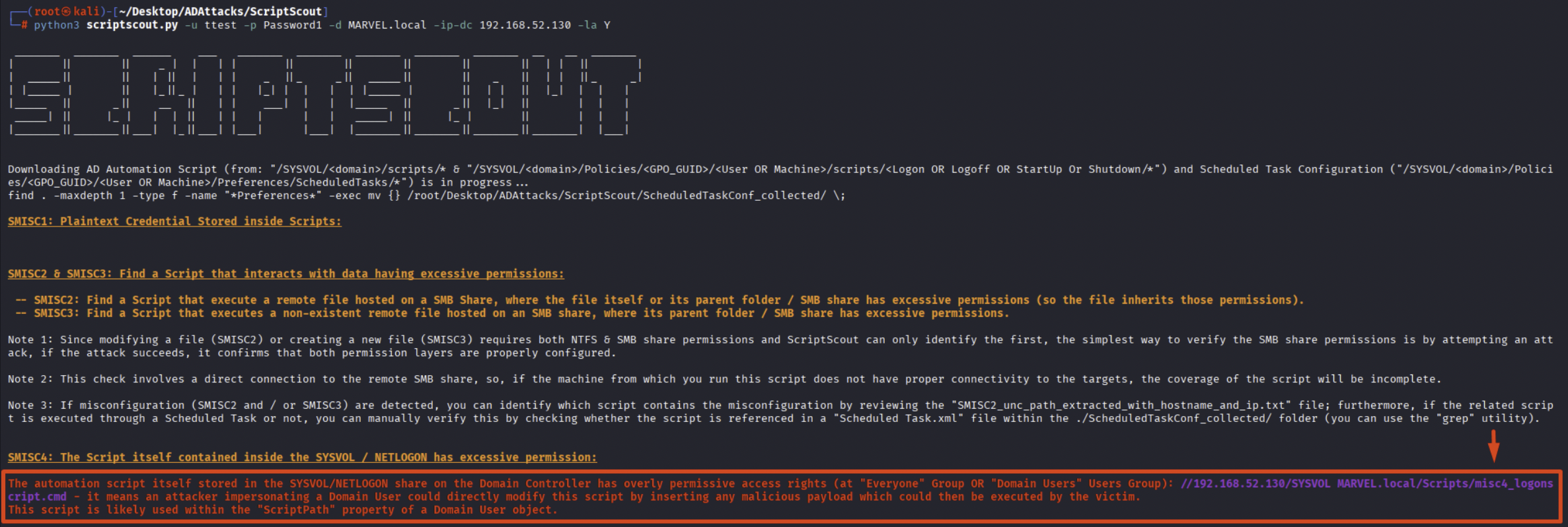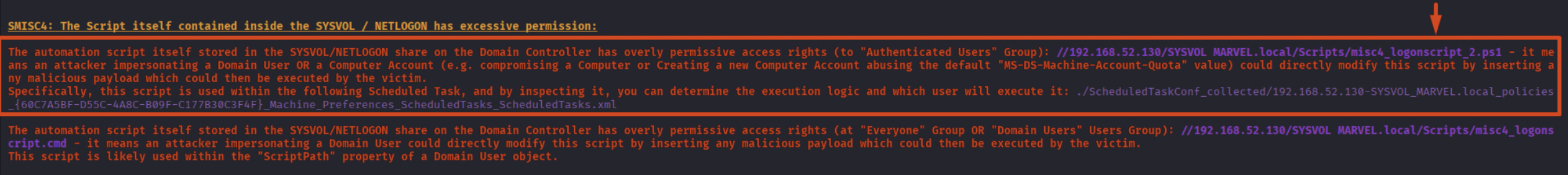 - SMISC4: The Script itself contained inside the SYSVOL / NETLOGON has excessive permission.