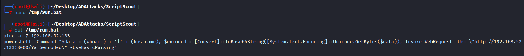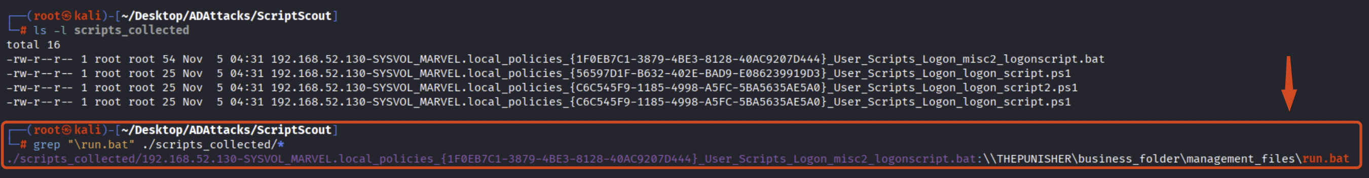 For OPSEC motivation and thus to avoid further querying the DC, ScriptScout will not execute any LDAP queries to report which OU is associated with the GPO that set up the vulnerable “Automation Script” or which domain user is associated with the “Logon Script” via ScriptPath, so, these verification must be performed manually using other tools such as BloodHound.