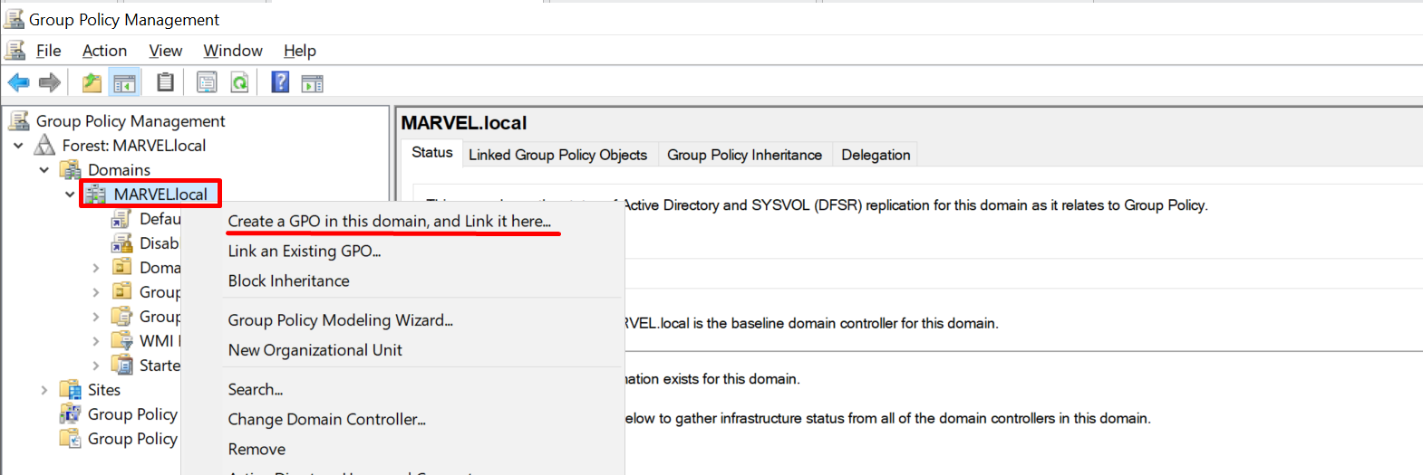 In this scenario, we will create a GPO that configures a specific Logon Script (so it will be a GPO that will exclusively affect domain users - User Objects) by associating it directly to the domain.