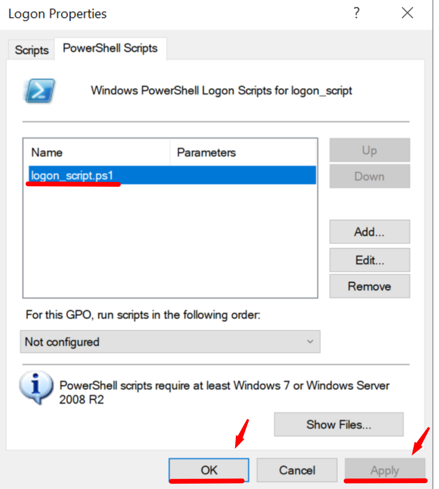 In our case, we are going to configure the following PowerShell Script “logon_script.ps1”