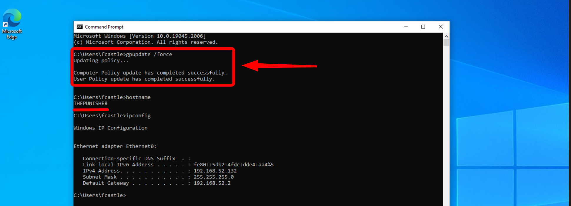 As for any other GPOs, several hours will be required to propagate this GPO throughout the whole domain, for this reason, since we are within our laboratory we will force this update for example on the machine THEPUNISHER.