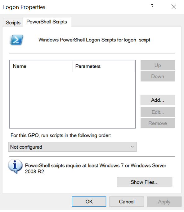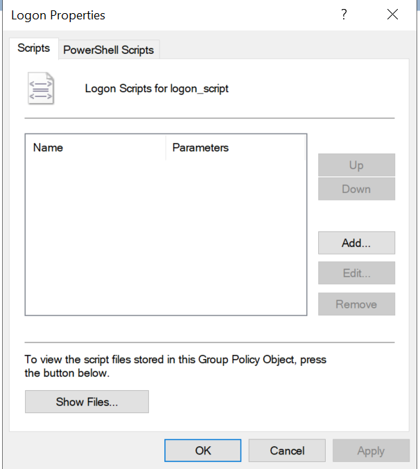 Specifically, in this article, a GPO that uses “Policies -> Windows Settings” to configure a Logon, Logoff, Startup, or Shutdown script will be called a “Group Policy Script” and depending on the type of “Automation Script” being deployed, the corresponding “Group Policy Script” may be called a “GPO Logon Script”, “GPO Startup Script” and so on.