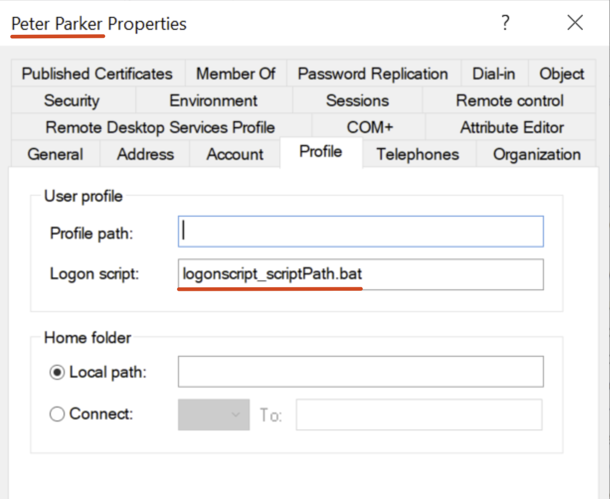 In an Active Directory context a Logon Scripts can also be configured using the “scriptPath” property that each “User” object (domain user) possesses.