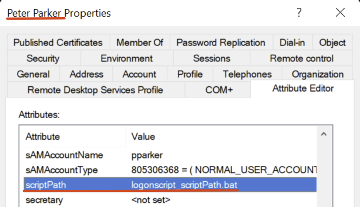 \\<DC-hostname>\NETLOGON” which by design it’s able to contain all “Logon Scripts” executed with this functionality.Specifically, setting this configuration the DC will automatically modify the “scriptPath” property of the corresponding “Users” object.